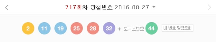오늘 27일 제717회 나눔로또 추첨 결과 1등 당첨번호는 '2, 19, 11, 25, 28, 32'으로 결정됐다. 2등 보너스 번호는 '44'이다.