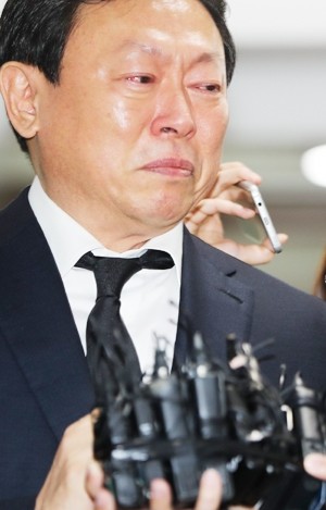 신동빈 롯데그룹 회장이 27일 오전 서울아산병원장례식장에 마련된 이인원 롯데그룹 정책본부장(부회장)의 빈소에서 조문을 마친 뒤 장례식장을 나서고 있다.