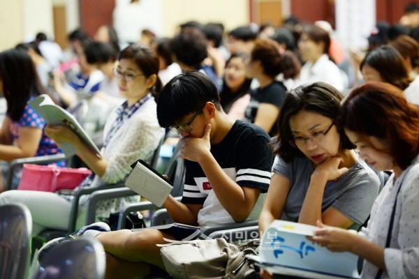 지난 27일 서울 동대문구는 구청 강당에서 9개 대학 대학입시 관계자들이 참여한 가운데 '2017학년도 대입 수시전형 설명회'를 개최했다. 사진은 설명회에 참석한 학부모와 학생들이 설명을 듣고 있는 모습.(사진제공=동대문구청)