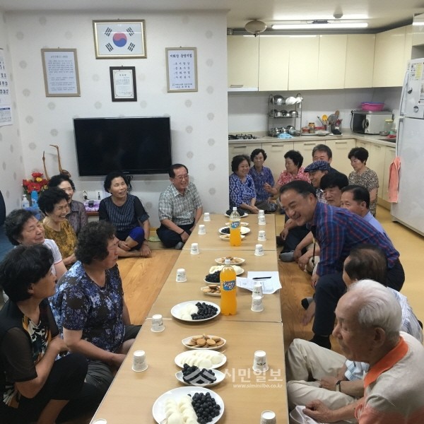 최근 황은성 경기 안성시장은 여름철 혹서기를 맞아 중앙경로당 등의 무더위쉼터를 방문해 시설을 점검하고 애로사항을 청취하는 등 폭염대비 피해 예방을 위한 점검에 나섰다. 사진은 황 시장이 노인들과 이야기를 나누는 모습.(사진제공=안성시청)