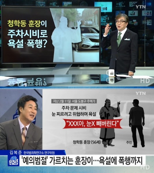 청학동 훈장 A씨는 지난 2월 서울 도봉구 한 주택가에서 주차문제로 주민과 마찰을 빚었다. 당시 그는 “눈깔 빼버린다”는 등 욕설을 하며 차량을 들이 받는 등 위협적인 행동을 보였다.