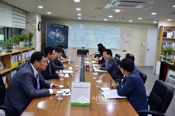 지난 31일 양 도시의 경제협력 및 기업교류에 대한 의견을 나누기 위해 경기 안산시를 방문한 중국 안산시 대표단이 지역 경제를 발전시킬 수 있는 경제교류 분야 등에 대해 논의하고 있다.(사진제공=안산시청)