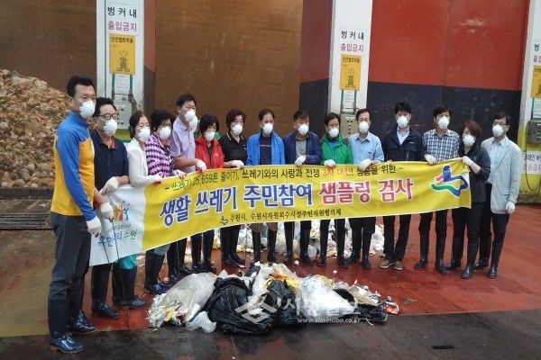 지난 30일 경기 수원시 팔달구 우만1동은 직원을 비롯한 주민자치위원회 20명과 함께 영통구에 위치한 수원시 자원회수시설을 방문해 '쓰레기 샘플링'을 실시했다. 사진은 이날 참여한 관계자들이 기념촬영을 하는 모습.(사진제공=팔달구청)