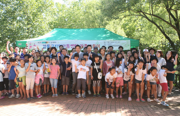 최근 서울 강동구 지역아동센터연합회 주관으로 열린 ‘제2회 강동구 지역아동센터 가족나들이’ 행사에 참석한 조동탁 의장이 행사에 참가한 아이들과 함께 기념촬영을 하고 있다.(사진제공=강동구의회)