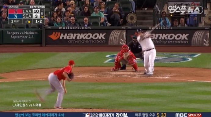 이대호는 1회말과 4회말에서는 삼진을 당했으나 이후 6회말 1사 1루에서 에인절스 좌완 선발 타일러 스캑스의 4구째 체인지업을 받아쳐 좌전 안타를 기록했다. 하지만 득점으로 이어지는 않았다.