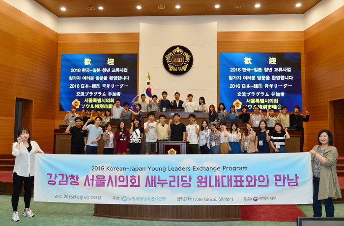 서울시의회 새누리당 강감창 원내대표가 8일 서울시의회 본회의장에서 2016년 한일 청년교류 프로젝트에 참가한 한일 대학생 32명과 대화의 시간을 가졌다.