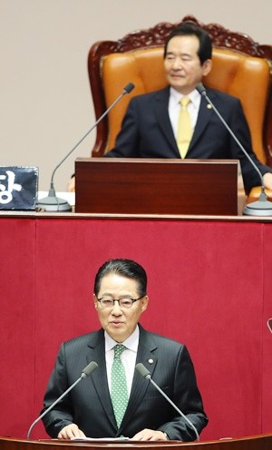 국민의당 박지원 비상대책위원장이 7일 오전 국회 본회의장에서 교섭단체 대표연설을 하고 있다.