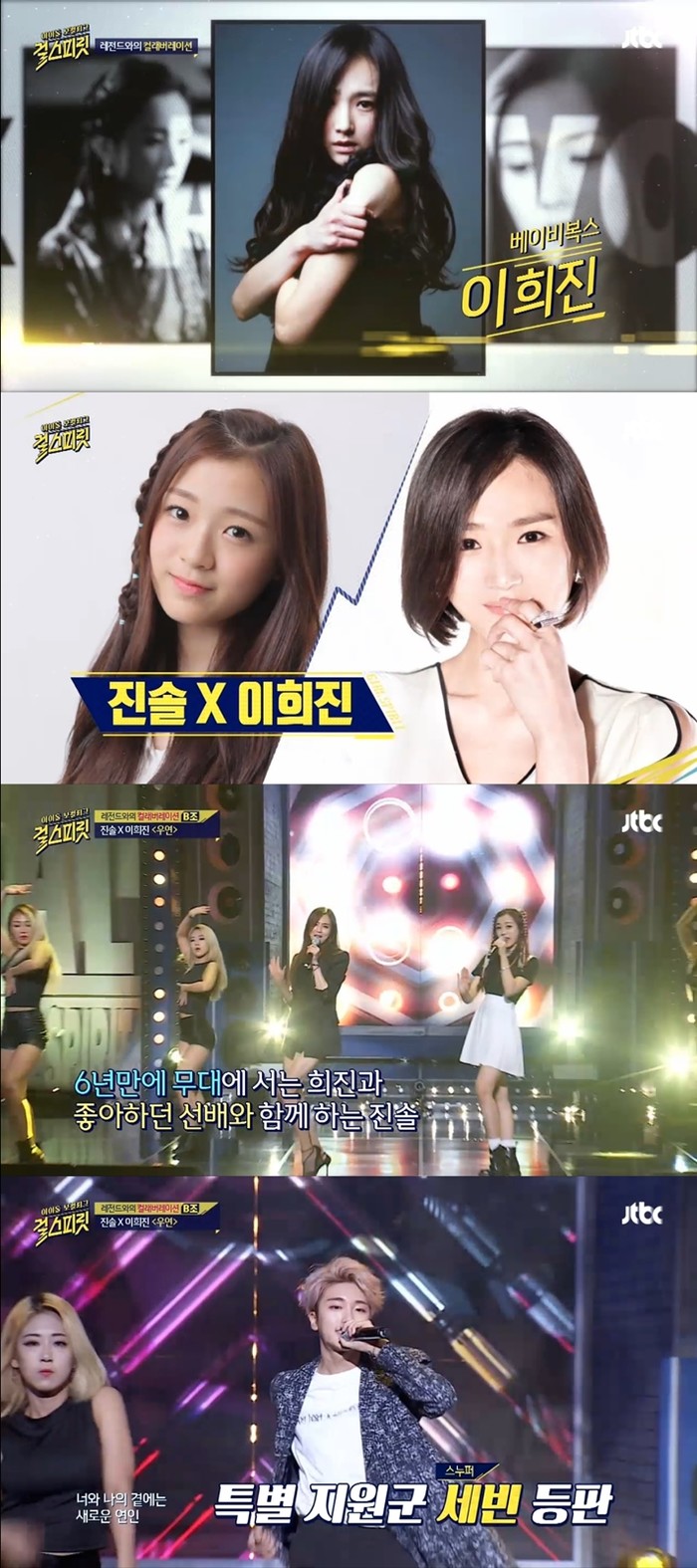 이희진이 지난 6일 오후 방송된 JTBC 예능프로그램 '걸스피릿'에서 에이프릴 진솔과 함께 베이비복스 무대를 재현했다.