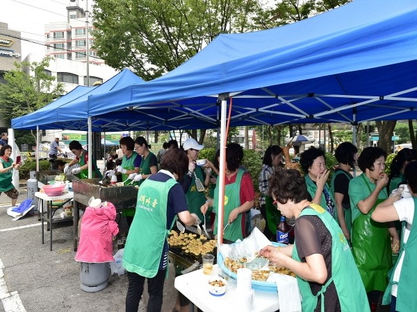 서울 서대문구 새마을부녀회는 추석 연휴를 앞둔 지난 7일 구청 광장에서 회원 100여명이 참여한 가운데 홀몸노인, 저소득 장애인과 조손가정 등의 어려운 이웃에게 전할 명절 음식을 만들었다.(사진제공=서대문구청)