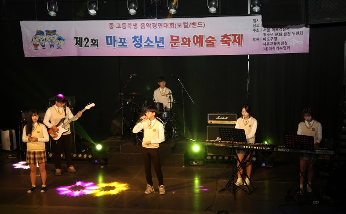 지난 7일 마포구 상암동 제일라아트홀에서 마포경찰서와 청소년문화발전위원회 주최로 '제2회 마포청소년 문화예술축제'가 열렸다. 사진은 축제에 참가한 청소년 팀이 경연을 펼치고 있는 모습.(사진제공=마포구청)