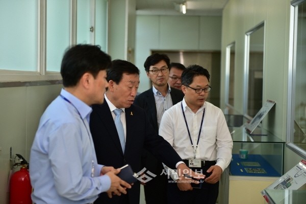 최근 제종길 경기 안산시장은 ‘기업체 작은도서관 운영지원사업’ 대상 기업체로 선정된 대성전기(주)를 방문해 작은도서관 개관식을 개최하고 기업지원 방안 등을 논의했다. 사진은 제 시장(왼쪽에서 두 번째)이 관계자들과 기업현장을 둘러보는 모습.(사진제공=안산시청)