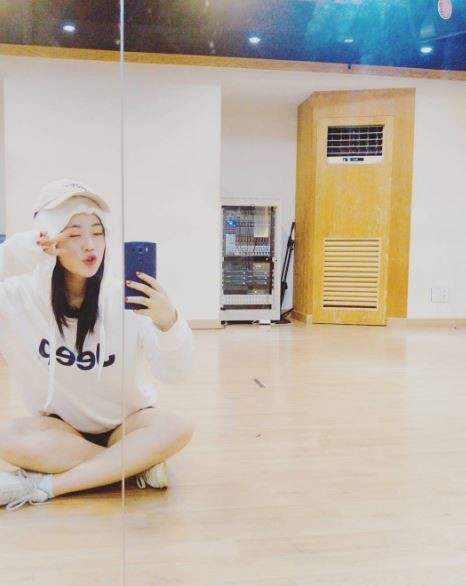 이날 그는 인스타그램에 "연습실 즐겁다 우케케"라는 글과 함께 한 장의 사진을 게재했다.