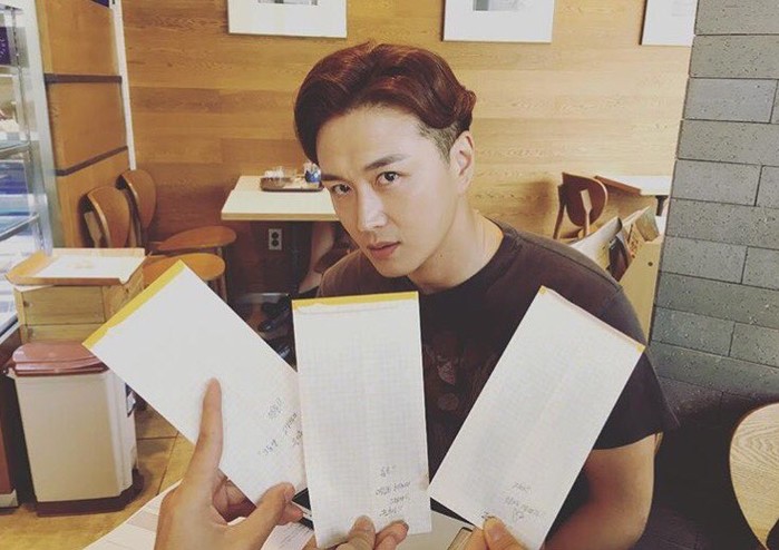 진태현은 맞이해 스태프들에게 용돈을 준 뒤 '츤데레' 눈빛으로 카메라를 바라보고 있다.
