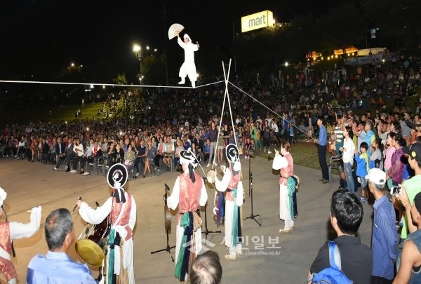 최근 경기 광주시가 추석을 맞아 귀성객과 시민, 외국인 등 1만3000여명이 참여한 가운데 청석공원에서 개최한 '한가위 문화한마당' 행사가 성황리에 마무리됐다. 사진은 줄타기 공연이 펼쳐지고 있는 모습.(사진제공=광주시청)