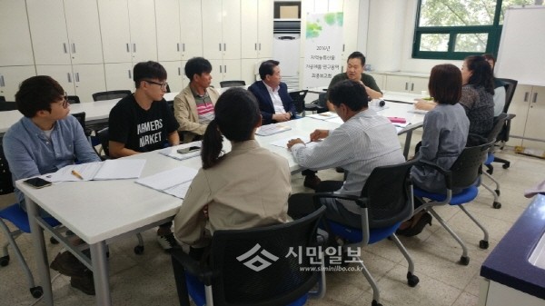 최근 경기 포천시는 농업기술센터장, 지역내 농산물 가공농가 및 로컬푸드 대표가 참여한 가운데 ‘포천 산채를 활용한 가공상품 개발 연구용역 최종보고회’를 개최했다. 사진은 관계자들이 회의하고 있는 모습.(사진제공=포천시청)