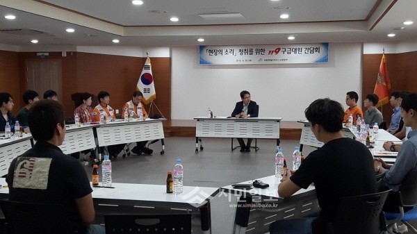 지난 20일 세종소방본부가 응급구조사와 간호사 20여명이 참석한 가운데 간담회를 개최했다. 사진은 간담회에 참여한 관계자들이 현장활동시 고충 사항에 대한 토론을 하는 모습.(사진제공=세종시청)