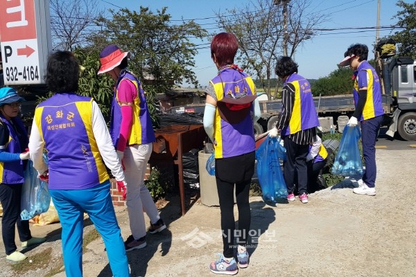 지난 20일 인천 강화군여성단체협의회는 회원 26명이 참여한 가운데 교동면 대룡시장에서 연산군 유배지까지 환경정화 활동을 실시했다. 사진은 회원들이 도로변에서 쓰레기를 수거하고 있는 모습.(사진제공=강화군청)