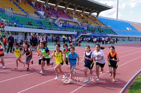 지난 20일 경북 구미교육지원청은 구미시민운동장에서 각 학교를 대표하는 초·중학교 선수 970여명 등이 참여한 가운데 '제35회 교육장기 초·중학교 육상경기대회'를 개최했다. 사진은 대회 참가자들이 육상경기를 하고 있는 모습.(사진제공=구미교육지원청)