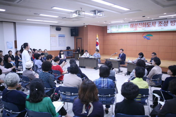 지난 21일 강동구청 대강당에서 이해식 구청장의 주재로 발제, 지정토론, 자유토론 순으로 진행된 ‘열린토론회’에서 이 구청장이 시민들의 의견을 듣고 있다.(사진제공=강동구청)