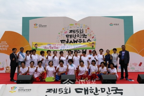 경기 양평군이 최근 경남 거창군에서 '배움으로 즐기는 100세 시대의 행복'이란 주제로 열린 '제5회 대한민국 평생학습 박람회'에 참가했다. 사진은 관계자들이 기념촬영하는 모습.(사진제공=양평군청)