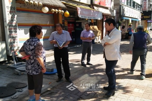 최근 경기 안산시 상록구는 생활민원 해결을 위해 사동 일대 민원현장을 방문해 주민불편사항을 점검했다. 사진은 문종화 구청장(오른쪽)이 주민과 이야기를 나누는 모습.(사진제공=안산시청)