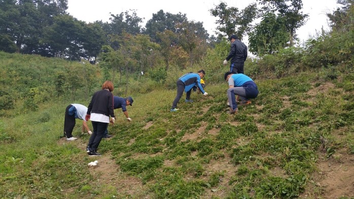 지난 25일 경기 동두천시 생연1동 주민자치위원회에서는 못골 터널 일대에 조성한 꽃 잔디 제초작업 및 주변 정리 등의 '깨끗한 마을길 가꾸기' 행사를 실시했다. 사진은 참여자들이 잡초를 제거하는 모습.(사진제공=동두천시청)