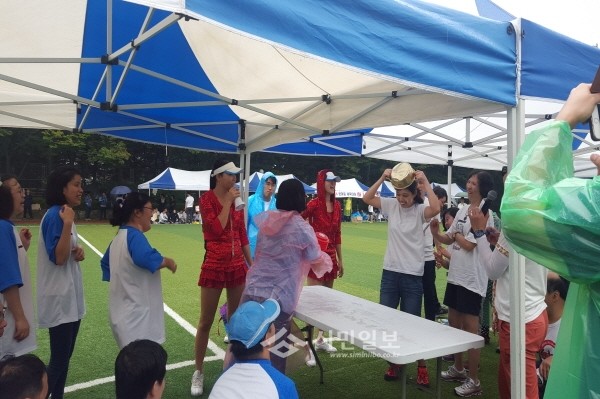 최근 서울 강동구가 장애인직업재활시설 근로장애인을 위해 지역내 12개 장애인직업재활시설의 근로 장애인 및 가족, 종사자를 대상으로 고덕동 동명근린공원에서 개최한 ‘2016 한마음 체육대회’에서 참가자들이 뿅망치 게임을 하며 즐거운 시간을 보내고 있다.(사진제공=강동구청)