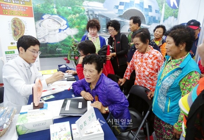 최근 전남 장흥군 안양면 비동리 일원에서 '통합의학, 사람으로 향하는 새로운 길을 열다'라는 주제로 '2016장흥국제통합의학박람회'가 개막했다. 사진은 관람객들이 한 체험존에서 의료서비스를 체험하고 있는 모습.(사진제공=장흥군청)