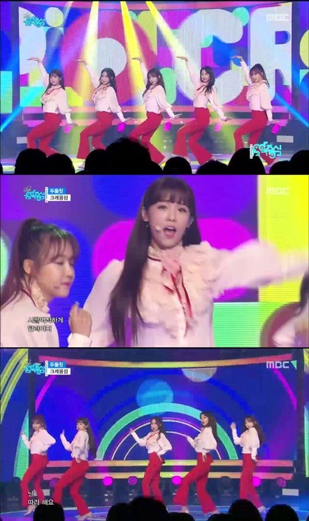 크레용팝은 1일 오후 방송한 MBC '쇼!음악중심'에 출연해 정규 1집 타이틀곡 '두둠칫' 컴백 무대를 선보였다.