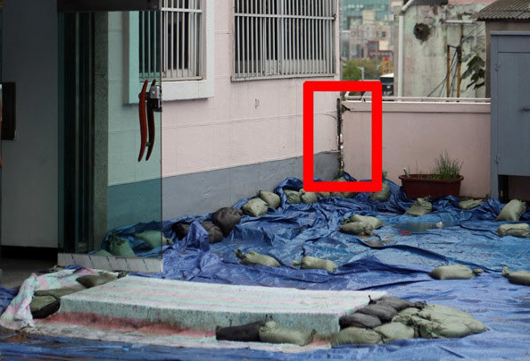구청은 해당 빌라가 더 기울어지지 않도록 안전조치를 했고, 계측기에 나타나는 빌라 기울기 움직임을 주시하고 있다.