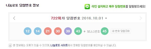 한편 로또 722회차 당첨 번호는 12, 14, 21, 30, 39, 43에 보너스 번호 45번으로 공개됐다.