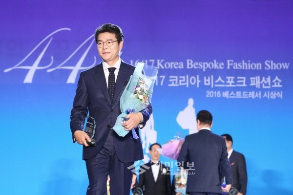 최근 정원오 서울 성동구청장이 일산 킨텍스에서 열린 '2016 소상공인 기능경진대회'에서 (사)한국맞춤양복협회가 선정한 베스트드레서로 선정됐다. 사진은 정 구청장이 수상 후 워킹하는 모습.(사진제공=성동구청)