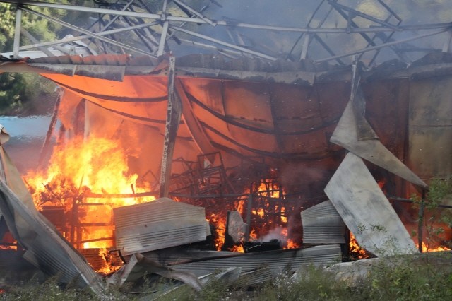 4일 오후 1시 10분께부터 경기도 고양시 성석동 한 가구공장 창고에서 불이 나 전소되고 있다.