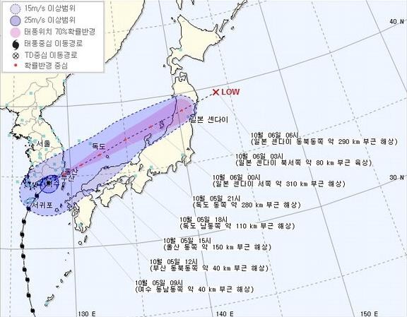 한편, 기상청에 따르면 5일 오후 2시 현재 태풍 차바는 부산 동북동쪽 70㎞ 부근 해상에서 시속 약 43㎞의 속도로 일본 열도를 향하는 중이다. 이에 따라 오후 1시부터는 제주에 내려졌던 태풍특보가 해제됐다. 부산, 울산, 경남, 전남 등에는 여전히 태풍특보가 발효 중이지만 고비는 넘긴 상태며 점차 소강상태로 접어들겠다.
