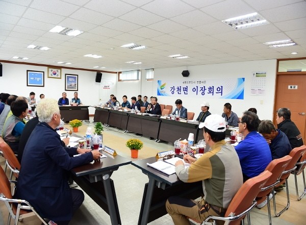 최근 경기 여주시 강천면은 원경희 시장을 비롯해 각 마을 이장, 지역내 기관·단체장이 참석한 가운데 '찾아가는 이장 간담회'를 개최했다. 사진은 원 시장(가운데)이 발언하고 있는 모습.(사진제공=여주시청)