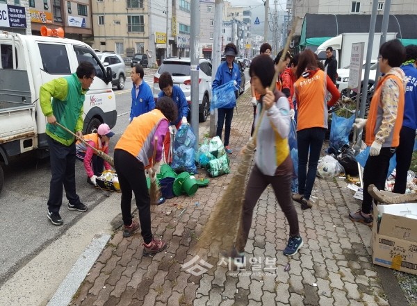 지난 4일 경북 구미시 인동동 남산체육공원에 자생단체회원, 유관기관, 공무원, 주민 등 250여명이 모여대대적으로 실시했다. 사진은 참여자들이 대청소를 하는 모습.(사진제공=구미시청)