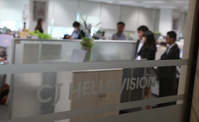 5일 오전 경찰청 특수수사과 직원들이 허위 세금계산서를 발급해 매출을 부풀린 혐의로 서울 마포구 상암동 cj헬로비전 본사를 압수수색하고 있다.