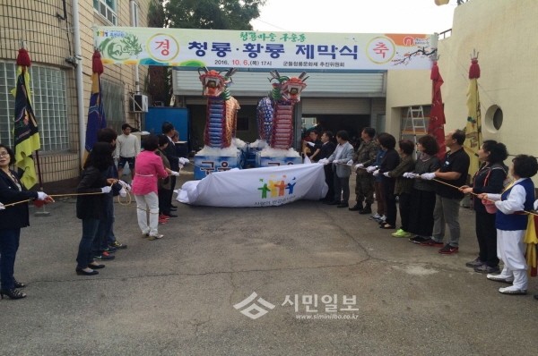 경기 수원시 권선구 구운동 청룡문화제추진위원회는 최근 동주민센터 앞에서 제5회 군들청룡문화제를 위해 제작한 청룡과 황룡의 모습을 공개하는 용 제막식을 개최했다.(사진제공=권선구청)