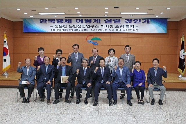 조동탁 의장은 이날 강연 전 축사를 통해 “이번 특강은 한국경제의 현황과 문제점에 대해서 깊이 고민하고, 각 부문별 동반성장을 통한 새로운 정책대안을 모색할 수 있는 뜻 깊은 시간이 될 것”이라며, “정운찬 이사장님의 특강을 잘 경청하시어 구민 복리증진을 위한 새로운 정책대안 발굴에 많은 도움이 되길 바란다”고 말했다.