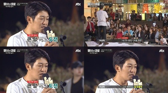 허성태는 12일 JTBC 예능 프로그램 ‘말하는 대로’에서 길거리 ‘버스킹’을 시도했다. 이후 허성태는 자신의 앞으로 모인 사람들에게 자신이 겪어야 했던 이야기를 토로했다.