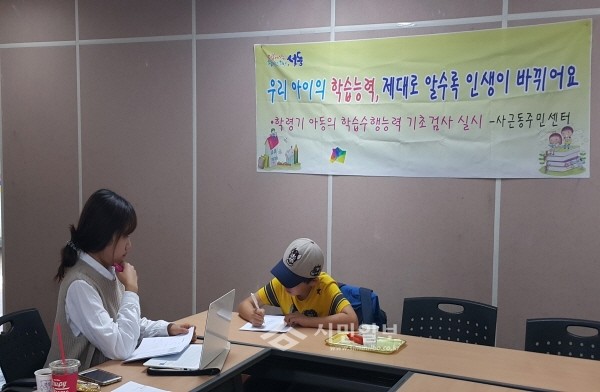 최근 서울 성동구 사근동 주민센터는 교육특구 실천의 일환으로 지역내 초등학생을 대상으로 하는 '학습수행능력 기초검사'를 시작했다. 사진은 한 아동이 검사를 받고 있는 모습.(사진제공=성동구청)
