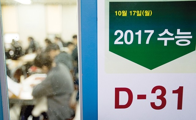수능을 한 달 가량 앞둔 17일 오전 서울 종로학원에서 수험생들이 공부에 열중하고 있다.