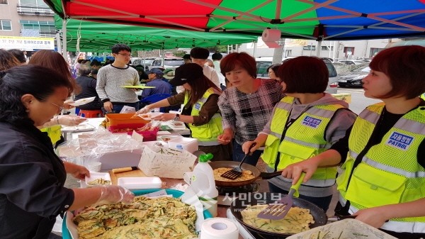 최근 인천 서구 서곶자율방범기동순찰대는 연희동 자율방범대 초소에서 '창단 37주년 기념식'을 개최하고, 지역 노인을 위한 식사를 대접하는 행사를 실시했다. 사진은 관계자들이 음식을 만드는 모습.(사진제공=인천 서구청)