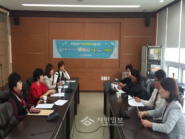 최근 충남 아산시 탕정면 행복키움추진단은 건강악화 및 월세비 체납으로 인해 거처를 잃게 된 위기가정 긴급 구호방안을 논의하고자 제5차 마을(village welfare) 사례회의를 개최했다. 사진은 참여자들이 회의하는 모습.(사진제공=아산시청)