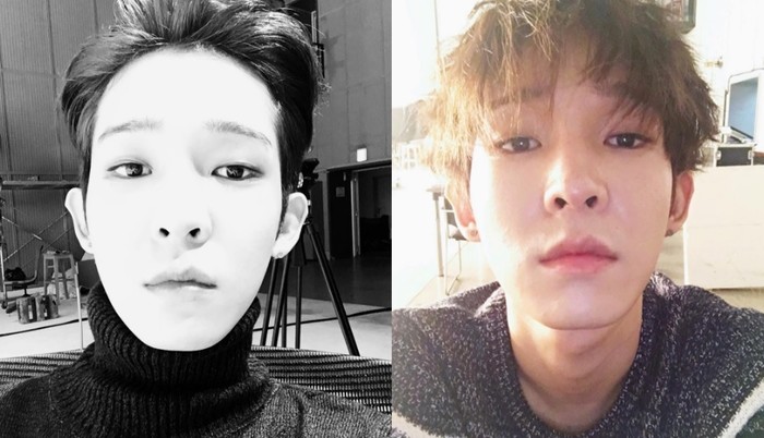 왼쪽 사진의 남태현은 이마를 드러낸 남성미 넘치는 스타일을 선보이고 있다. 반면 오른쪽에서는 차분하게 내린 머리를 통해 상반된 분위기를 발산하고 있다.