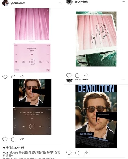 최근 남태현과 정려원의 인스타그램에는 공통적으로 영화 '데몰리션'의 포스터가 게재돼있다.