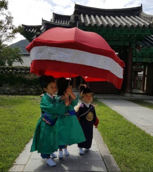 사진 속에는 이동국의 자녀 쌍둥이 수아, 설아와 대박이가 지난 18일 종영된 KBS2 월화드라마 ‘구르미 그린 달빛’을 패러디한 모습이 담겨 있었다.