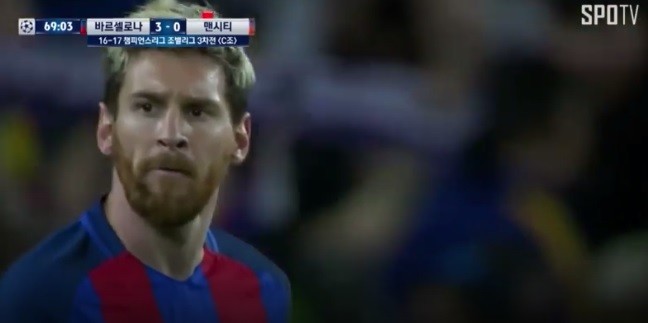 그는 20일(한국시각) 누 캄프에서 열린 2016-2017 UEFA 챔피언스리그 C조 맨시티와의 조별리그 3차전에 선발 출전해 3골 1어시스트로 맹활약하며 팀의 4-0 완승을 이끌었다.