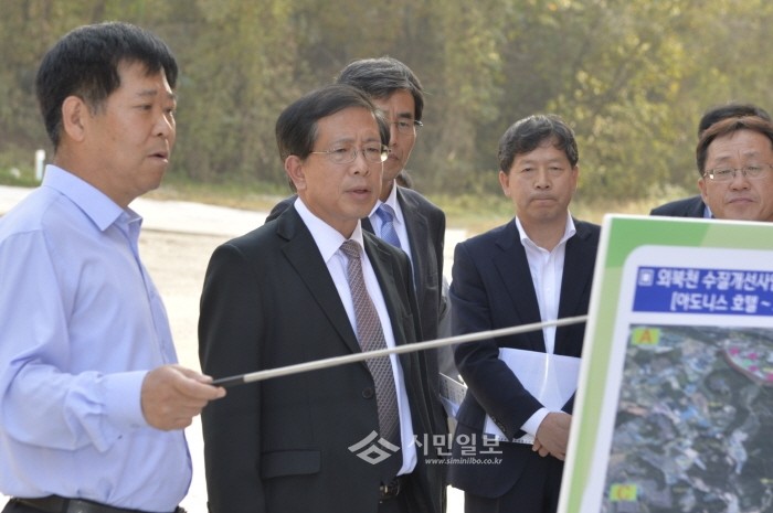 지난 20일 민천식 경기 포천시장 권한대행은 한탄강 광암~마산간 도로 확포장공사 및 한탄강 자연생태탐방로 등 주요사업장을 방문해 현장소통을 실시했다. 사진은 민 권한대행(왼쪽에서 두번째)이 공사 현장에서 관계자의 보고를 청취하는 모습.(사진제공=포천시청)