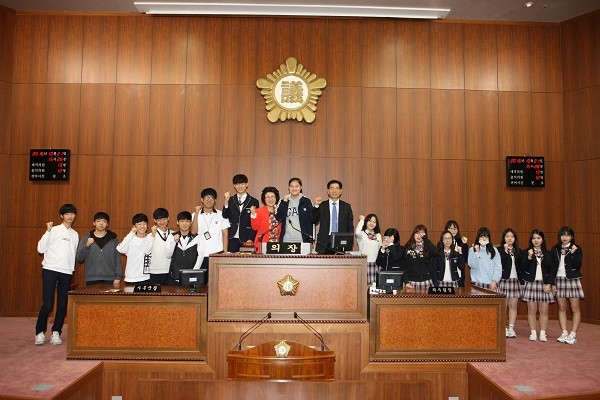 이어 안춘선 운영위원장이 학생들과 대화의 시간을 가졌다. 안춘선 의원은 “가장 아름다운 시기에 시의회를 방문해준 것에 대해 감사하다”며 “처음에는 시의원이 될 줄 몰랐지만 저에게 주어진 일은 하나하나 하면서 한 발짝 두 발짝 나아가다보니 어느새 내 꿈이 이루어졌다.”며 학생들도 큰 꿈을 가질 것을 주문했다.